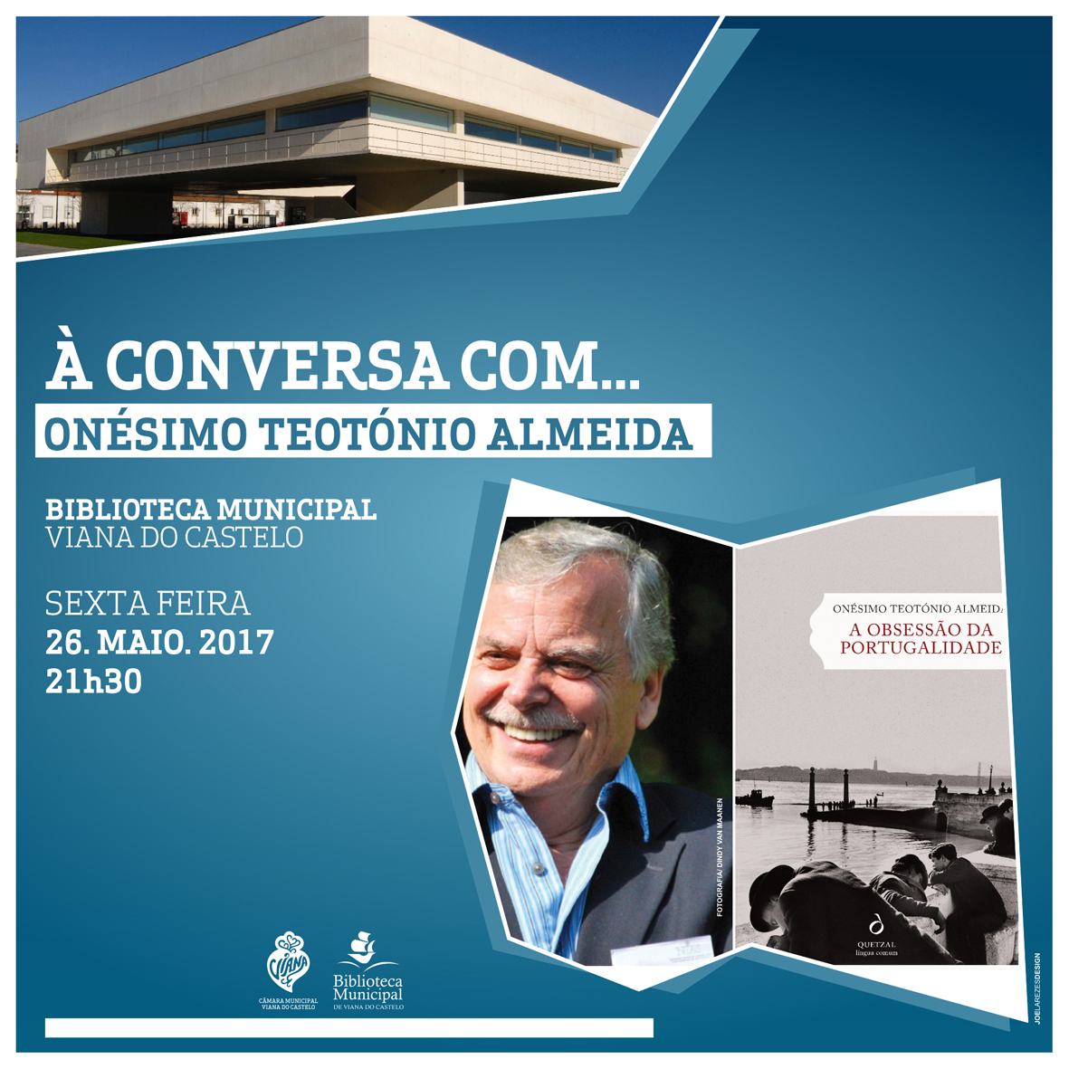 No próximo dia 26 de Maio, sexta feira, às 21.30 horas, na Sala Couto Viana da Biblioteca Municipal de Viana do Castelo, vamos estar à conversa com o escritor Onésimo Teotónio de Almeida a propósito do seu mais recente livro intitulado A obsessão da portugalidade.